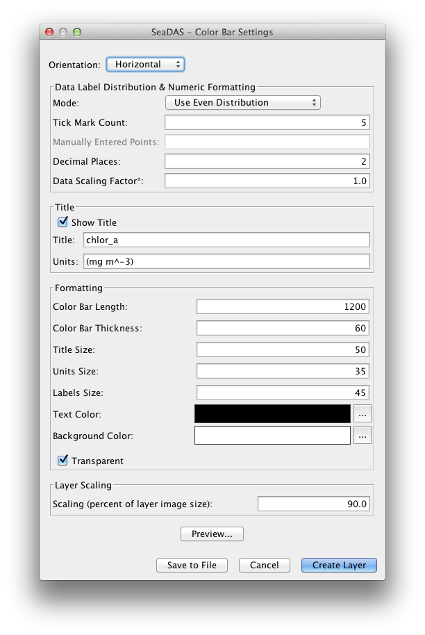 The Color Bar tool has been significantly revised for SeaDAS 7.1 with a lot of new parameter option choices for the