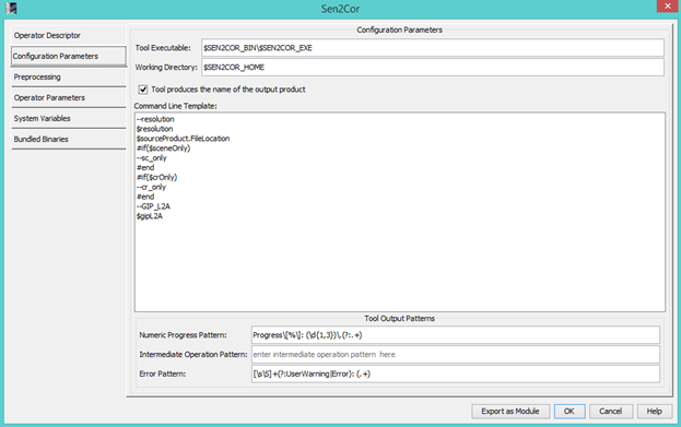 - Pre-processing tool: when this option is checked and an already defined tool is chosen in the combobox,