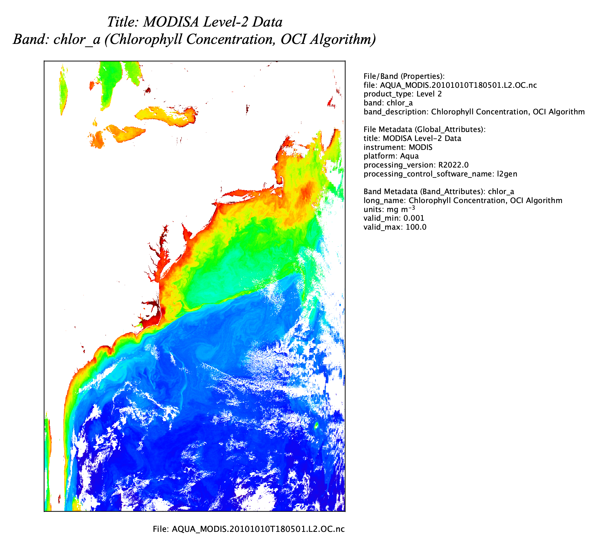 Image 1: Annotation Metadata Layer shown over a MODIS Aqua level-2 scene image