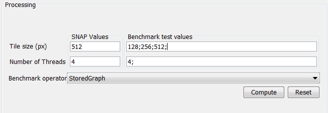 This preferences page provides options to customize processing parameters. You can manually set processing parameters in SNAP Values or use the benchmark to compute faster processing parameters.